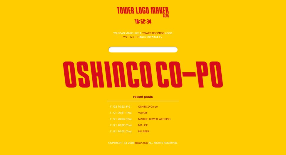 | Overview | タワーロゴメーカー。 某大手CDショップチェーンのロゴを作成できるロゴジェネレーター。 |