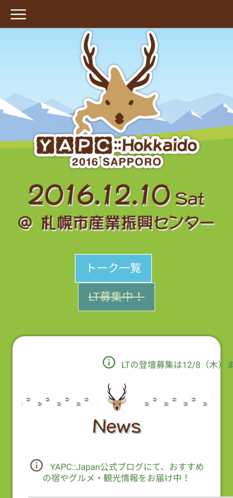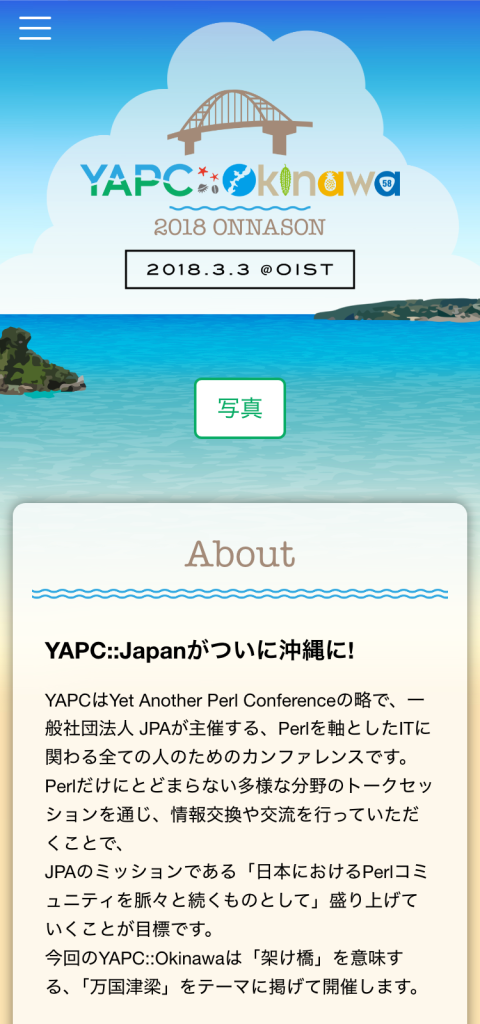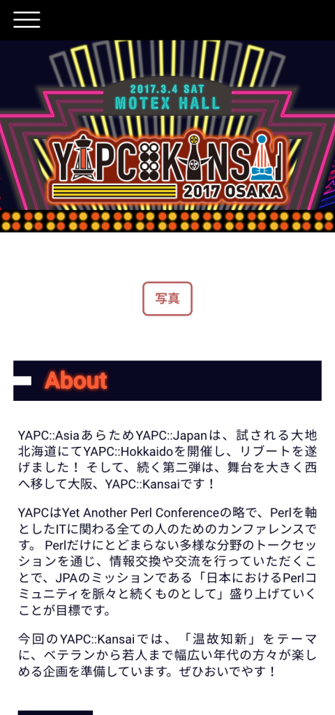 | Website | YAPC::Tokyo 2019 YAPC::Okinawa 2018 ONNASON YAPC::Fukuoka 2017 HAKATA YAPC::Kansai 2017 OSAKA YAPC::Hokkaido 2016 SAPPORO |